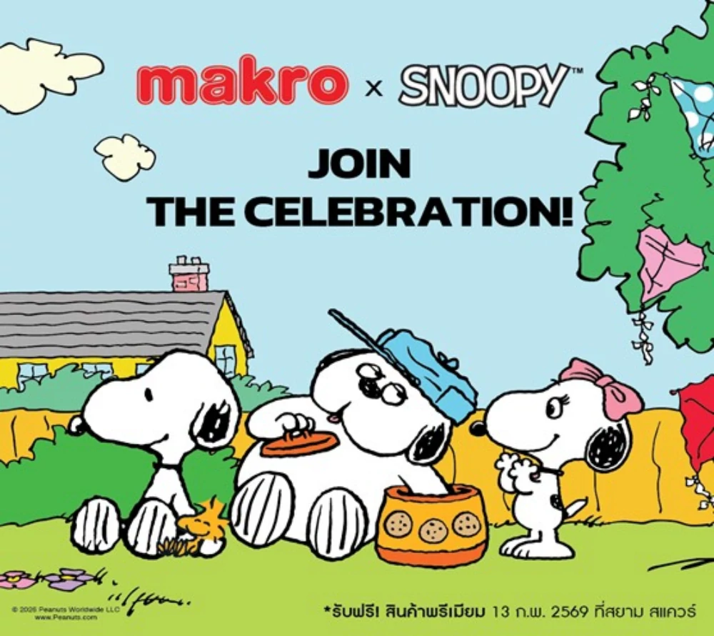 makro kicks off the festive season by partnering with Peanuts’ Snoopy & Friends, launching a Character Marketing campaign that introduces a new shopping experience through exclusive activities and promotions throughout February 2026. Key highlights include “Snoopy Celebration @ Siam Square” on 13 February 2026, featuring a giant Snoopy balloon and friends at the heart of Siam Square, alongside special privileges and promotions via the makro PRO application for new customers and app shoppers who meet campaign conditions.